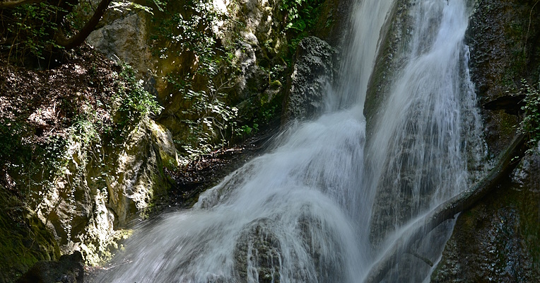 A level path leads to the lower jump, where one can admire the water gushing over banks of “phytothermal” travertine, formed by the precipitation of calcium carbonate on water plants. The particularity of the waterfall is the presence of some stretches where the formation of these travertines is still active.