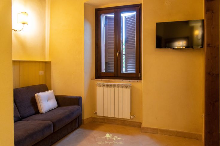 Die Zimmer, Suiten und Appartements des Relais Borgo Campello vereinen ein gemütliches Ambiente und eine warme Atmosphäre mit viel Liebe zum Detail.Das Restaurant, das private Spa, die Bar, die Tagungsräume, die Gärten und die Terrassen vervollständigen und verschönern das Relais Borgo Campello. Das Relais Borgo Campello liegt auf einer Hügelkuppe, nur wenige Kilometer von Spoleto und den Fonti del Clitunno entfernt, in einer strategischen Position im Zentrum der wichtigsten Kunststädte Umbriens (Assisi, Montefalco, Bevagna, Rasiglia, Foligno, Spello, Trevi, Norcia und Cascia).