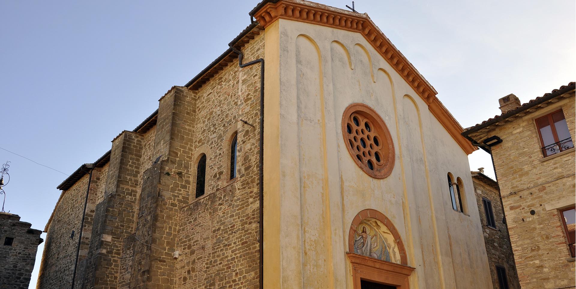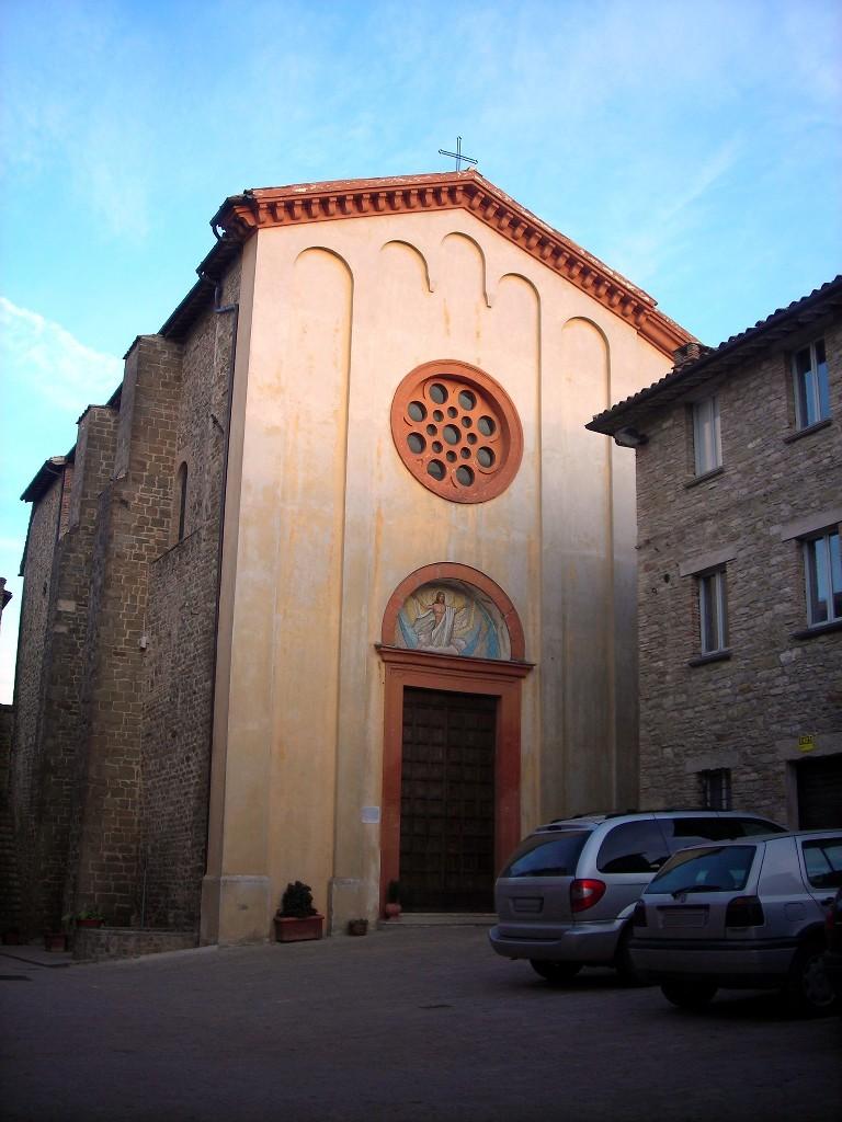 Vom ursprünglichen Aufbau sind die drei Eingangstore erhalten: Porta Perugina oder Porta Sole im Süden, Porta del Giglio oder Porta Gualdese im Norden, Porta Eugubina im Westen. Zu besichtigen ist die Pfarrkirche Santa Maria Assunta (10. Jh.), weitgehend im 19. Jh. erneuert, die einen Triptychon von Matteo da Gualdo bewahrt, und die Wallfahrtskirche Madonna dell'Olmo, die in Erinnerung an das Wunder der einer Hirtin auf einer Ulme erschienenen Heiligen Jungfrau (1484) errichtet wurde, deren Baumstamm in ihrem Inneren aufbewahrt wird.