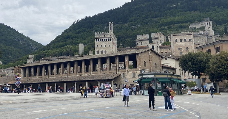 In 90 BC, it became a Roman municipality, but as early as the 3rd century BC, Gubbio had entered into agreements with Rome for the supply of military contingents. Its proximity to the Apennine pass of Scheggia and to the Flaminia road that crosses it certainly contributed to its fortune. From the 5th century onwards, it suffered occupations and destructions (Goths, Byzantines, Lombards), and in the 12th century, freeing itself from the bishop's authority, it established a municipal self-government. From 1262 to 1350, it experienced a long period of peace and prosperity, with significant urban development including the walls and the imposing Municipal Palaces.