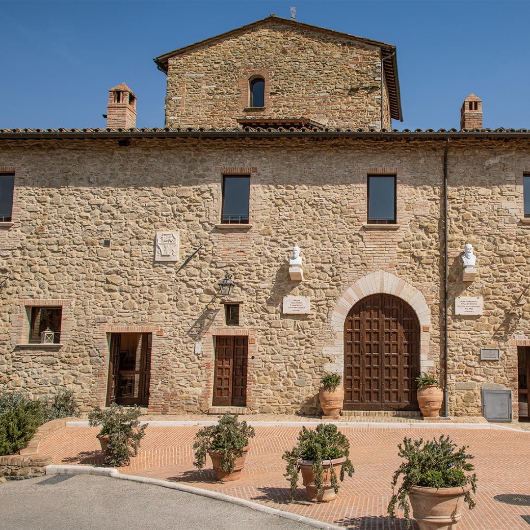 La visita di Solomeo parte da Piazza della Pace e dal Foro delle Arti, costruito da maestri artigiani umbri ispirandosi agli artisti britannici William Morris e John Ruskin.